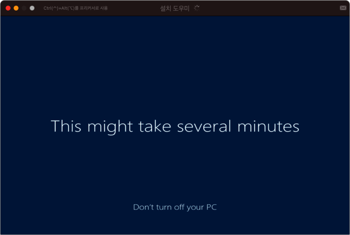 설치에 걸리는 시간은 처음부터 끝까지 체 5분이 걸리지 않을 만큼 매우 빠르게 진행 됩니다 설치 후 Parallels와 관련해서는 특별히 해 줄 것은 없습니다. 다만, 설치 파일이 기본적으로 영문 Windows 10이기 떼문에, 한글화 작업을 해 주어야 합니다.(사용 언어/지역/키보드.등)