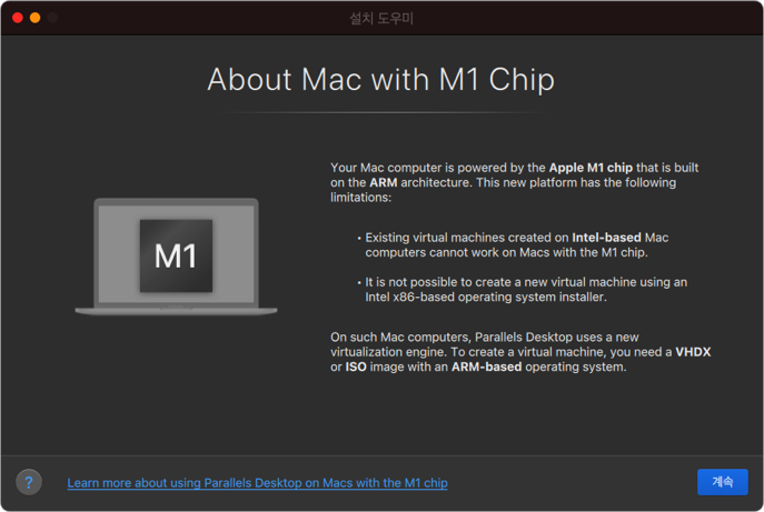 기존의 Mac을 사용하던 사용자들 조차 새로운 M1 chip을 사용하는 신형 Mac애서 Windows를 사용히는데 난감한 상황에 빠지게 됩니다. 이유는 M1칩은 Intel X86 프로세서가 아닌 ARM 코어 기반이기 때문에 기존의 Intel칩 기반의 Parallels를 사용할 수 없을 뿐만 아니라, M1칩용 Parallels에서 조차 기존에 사용하던 가상머신 파일을 사용할 수 없기 때문입니다.