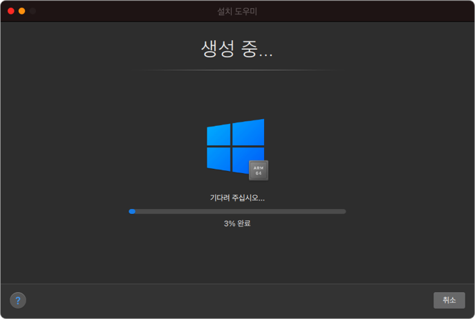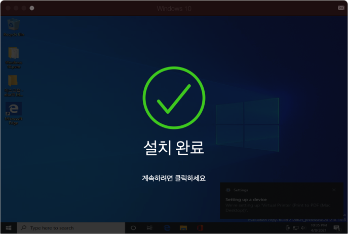 Parallels Desktop에서 Windows 10 가상머신 생성